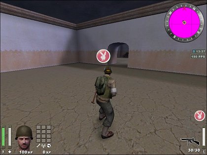 After not working on my map since April, today I found a few hours to debug the objective script, complete with a new model and screen graphics. The icon graphic change is programmable from within the map script and the new document objective model is available for other ET & RTCW maps as well. The screenshots show the new model and in-game objective icon. April 20, 2004Map Progress - New Allied Spawn